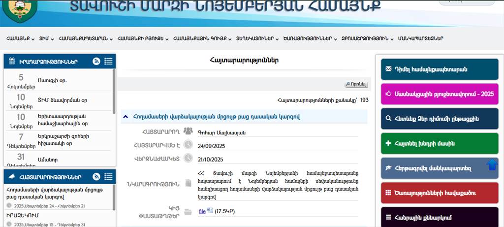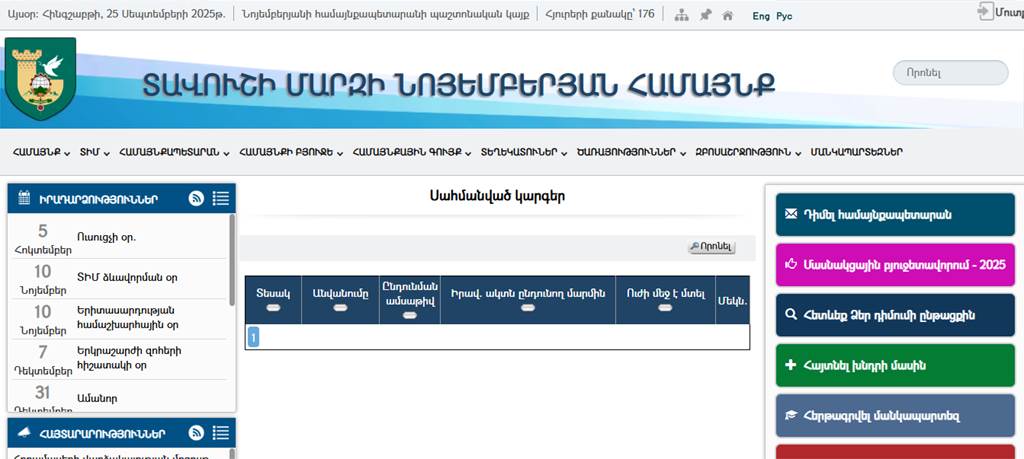 Նոյեմբերյանի համայնքապետարանի պաշտոնական կայք